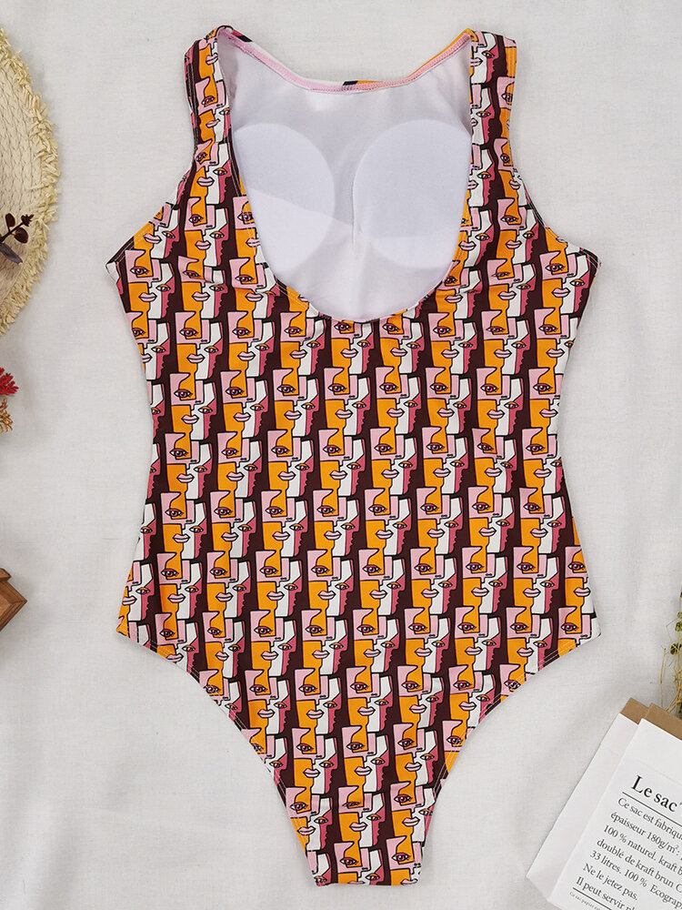 Abstrakt Figurtryk Åben Ryg Ærmeløs One Piece Beach Badetøj Til Kvinder