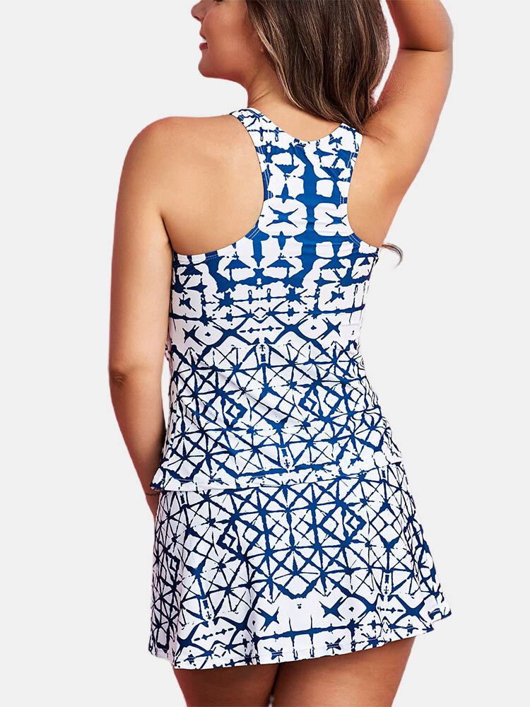 Abstrakt Geometrisk Tryk Brede Skulderstropper Summer Beach Blue Swimdress