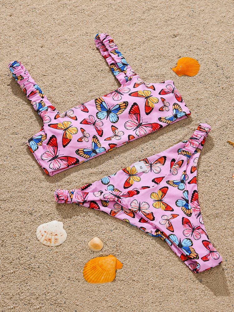 Animal Butterfly Print Polstret Bikini Holiday Beach Badedragter Til Kvinder