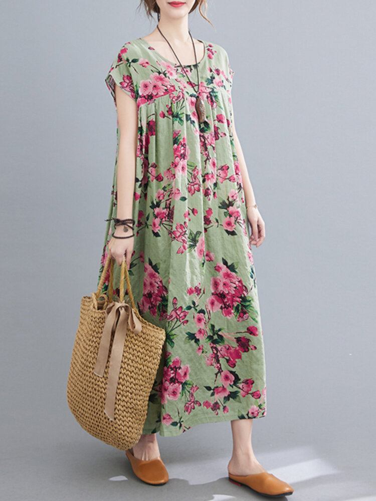 Blomstertrykt Bohemian Europe Retro Style O-hals Løs Kjole