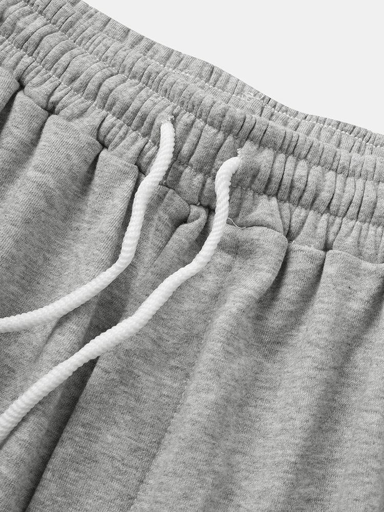 Bomuld Herre Ensfarvet Lomme Overalls Med Snøre Løse Shorts