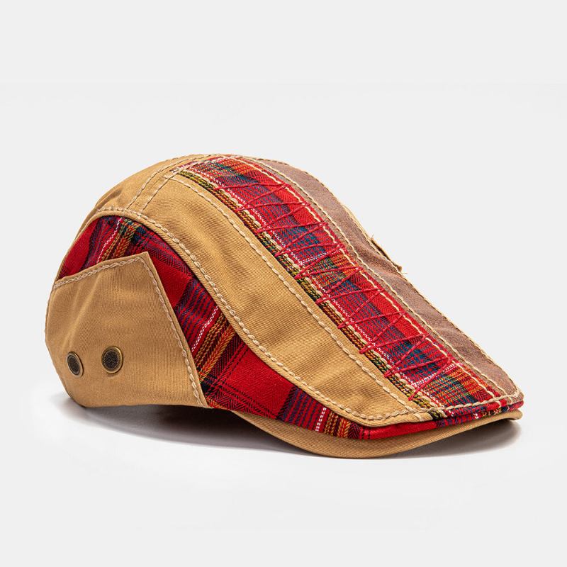 Collrown Unisex Patchwork Brevmønster Broderi Casual Vintage Baret Flad Kasket Forward Hat