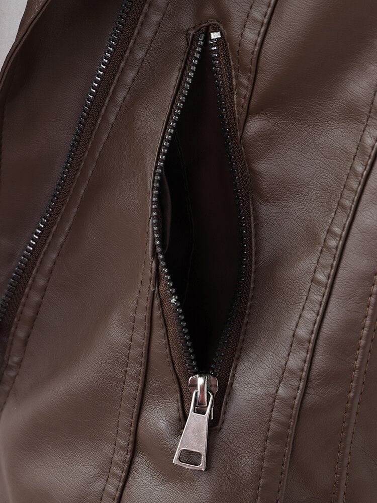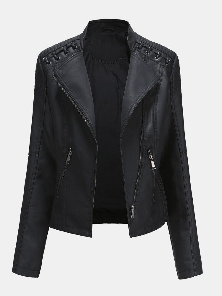 Dame Imiteret Pu Læder Ensfarvet Motorcykeljakke