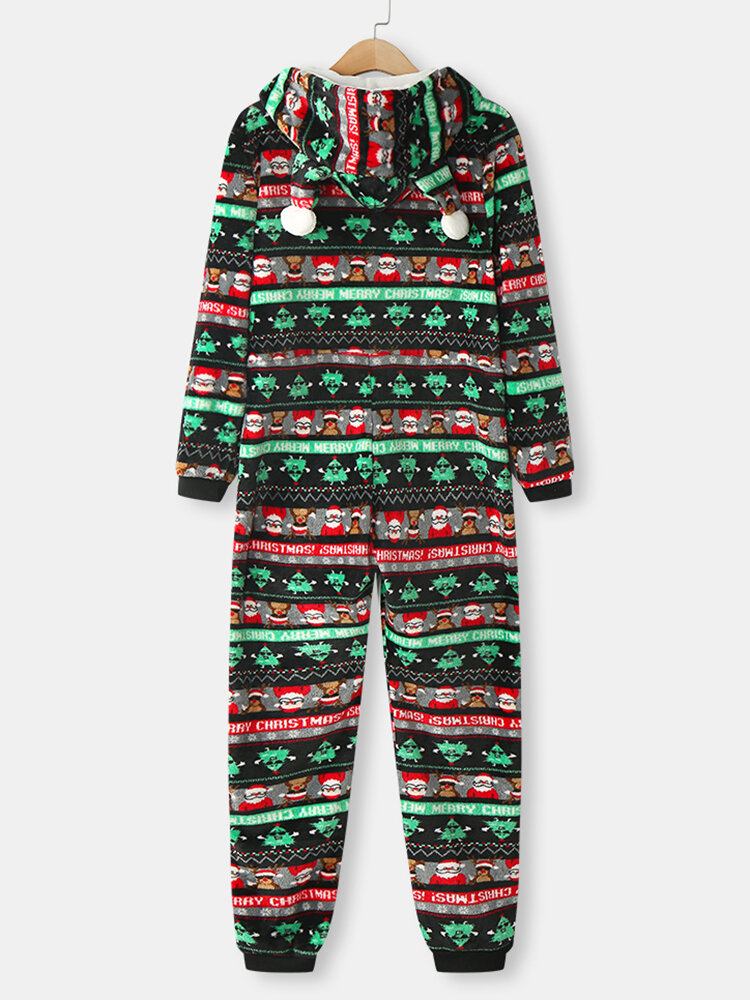 Dame Juleflanelltrykt Lynlås Øredetaljer Langærmede Onesies Hættepyjamas