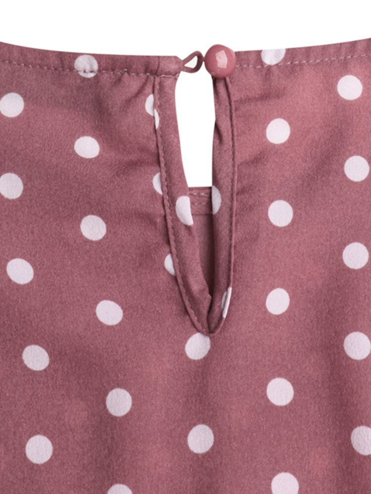 Dame Pufærmer Daglig O-hals Splejsede Dots Casual Løs Bluse