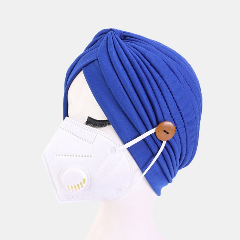 Ensfarvet Beanie National Style Knapmonterbare Ører Forhindrer Kvælning Bandana