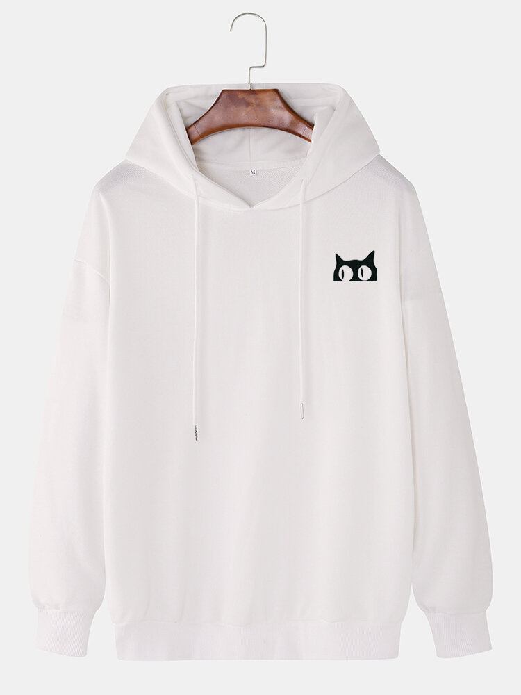 Ensfarvet Herre Sød Kattemønster Pullover Hættetrøje