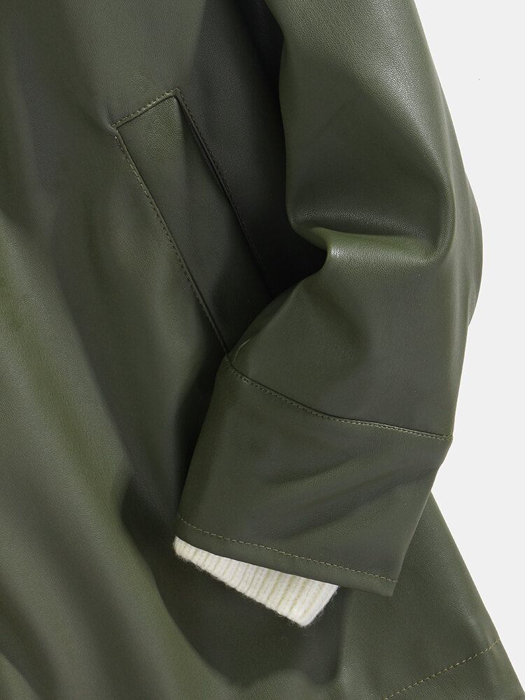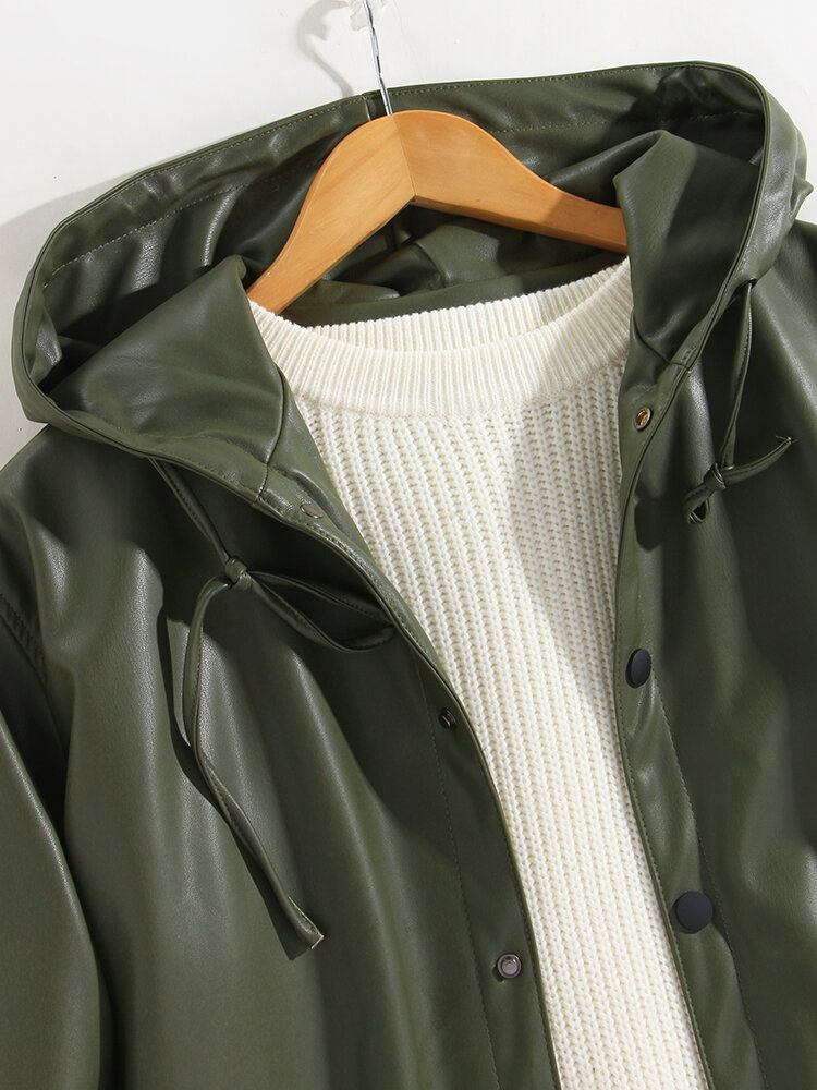 Ensfarvet Læderjakke Med Hætte Til Mænd Med Skrå Lomme