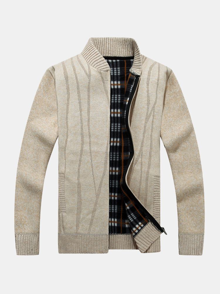 Ensfarvet Lynlås Strikkede Cardigans Med Baseballkrave Til Mænd Med Lomme