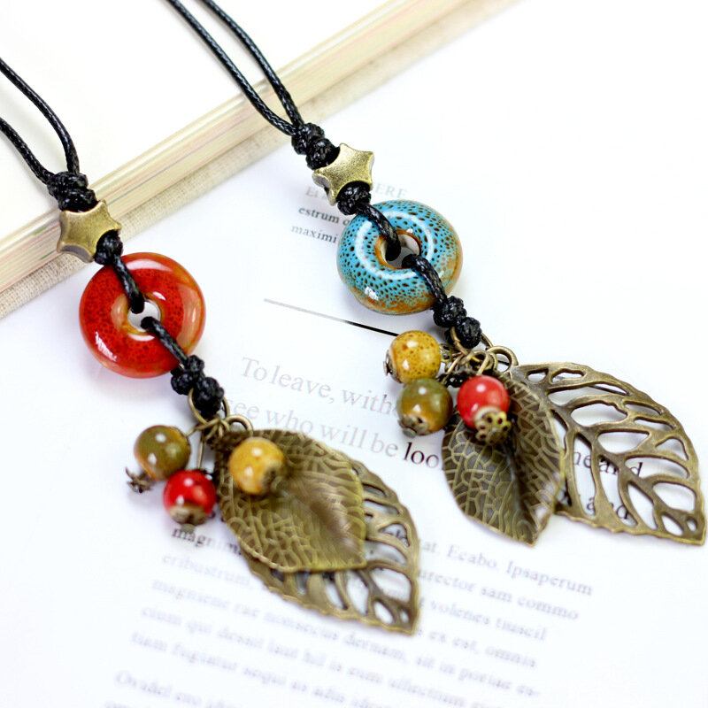 Etnisk Vedhæng Håndlavede Perler Halskæde Blade Halskæde Vintage Smykker Til Kvinder