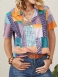 Geometrisk Print Revers Knap Kortærmet Casual Bluse Til Kvinder