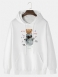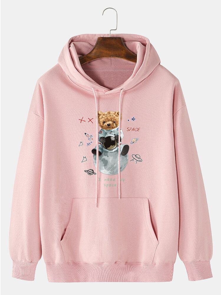Herre 100% Bomuld Astronaut Bear Print Drop Skulder Hættetrøje Med Lomme