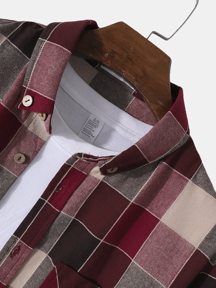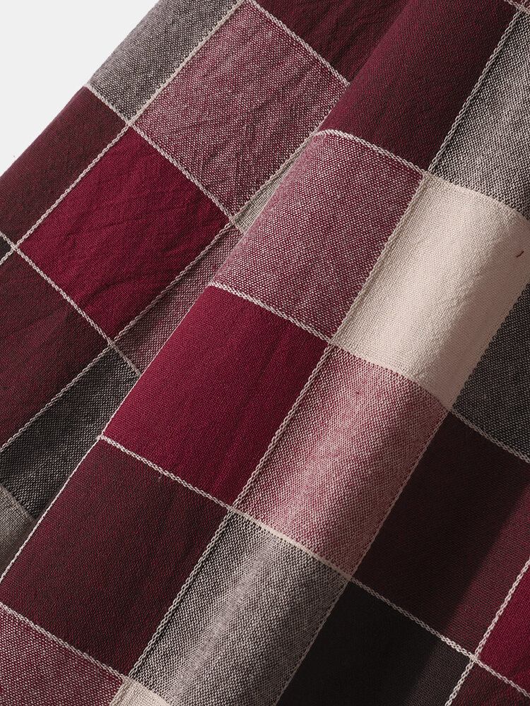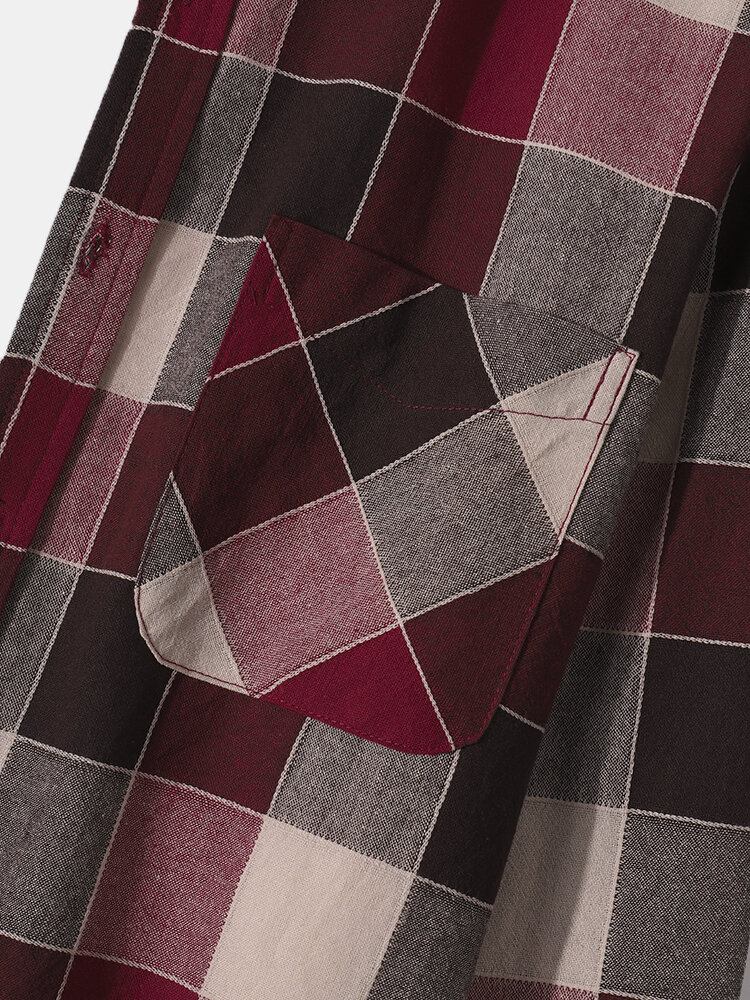 Herre 100% Bomuld Vintage Casual Rød Plaid Skjorte