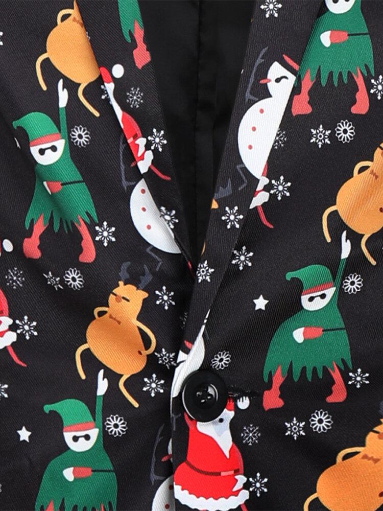 Herre Allover Juleelement Print Bomuld Enkeltradet Stilfuld Blazer