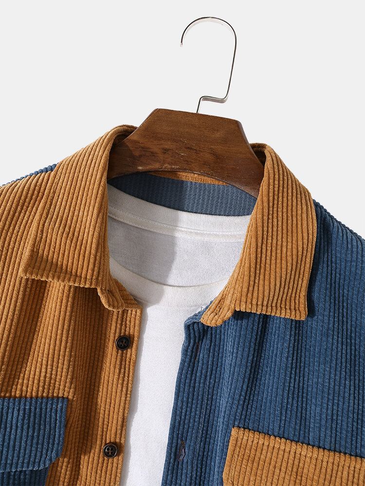 Herre Fløjlsbukser Tofarvet Patchwork Flap-lomme Fritidsskjorter