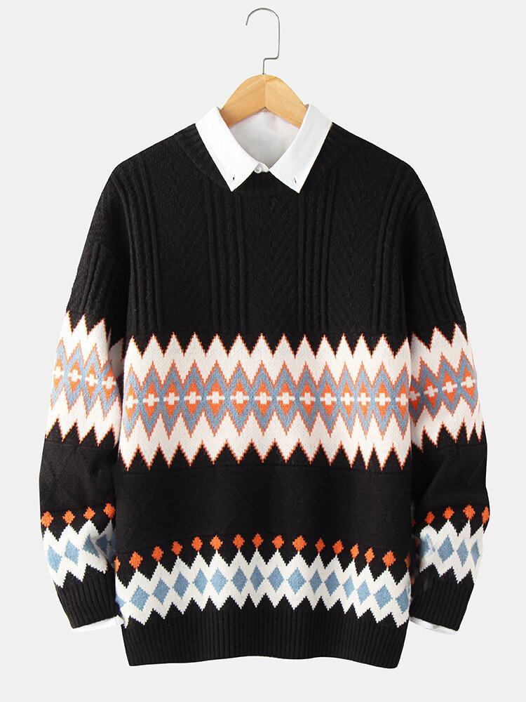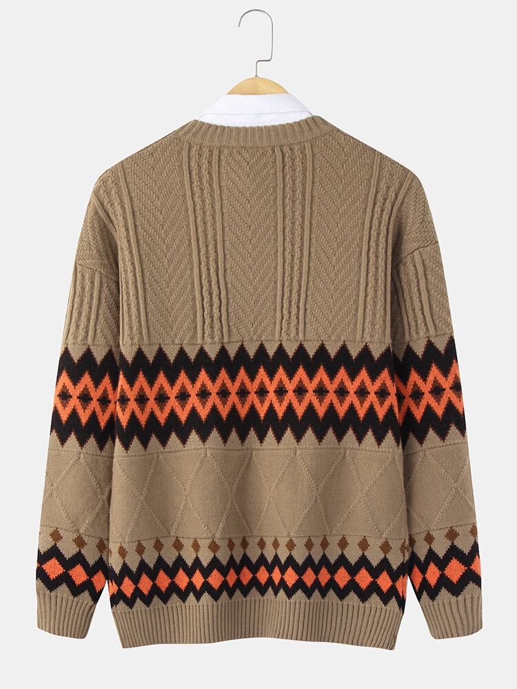 Herre Geometrisk Strikket Varm Tyk Kabel Langærmet Sweater