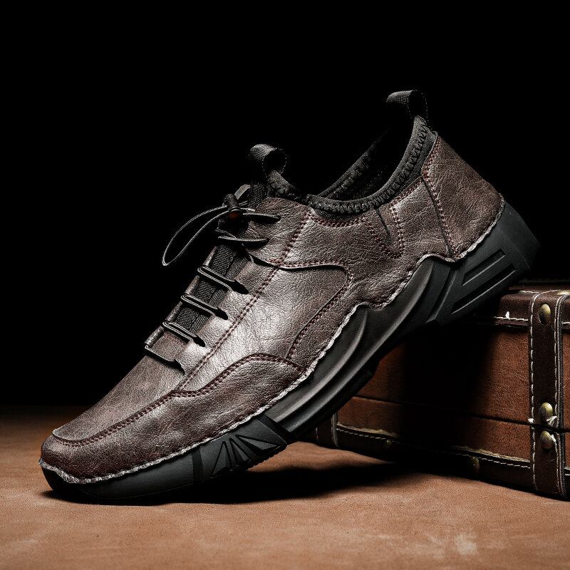 Herre Okselæder Åndbar Blød Sål Håndlavet Ren Farve Elastiske Snørebånd Casual Sko
