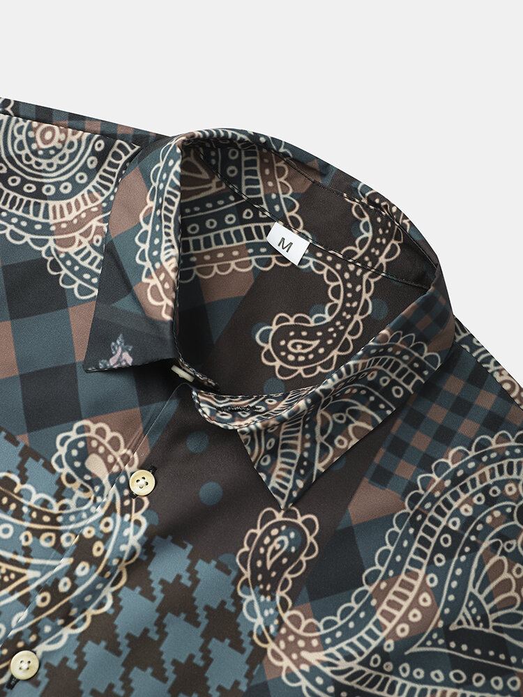 Herre Paisley Mix Print Lapel Etnisk Stil Kortærmede Skjorter