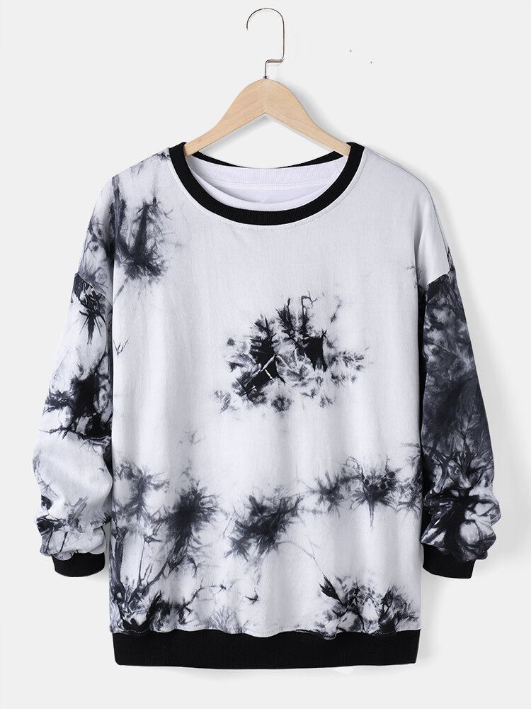 Herre Tie-dye Print Løs Afslappet Sweatshirt Med Rund Hals