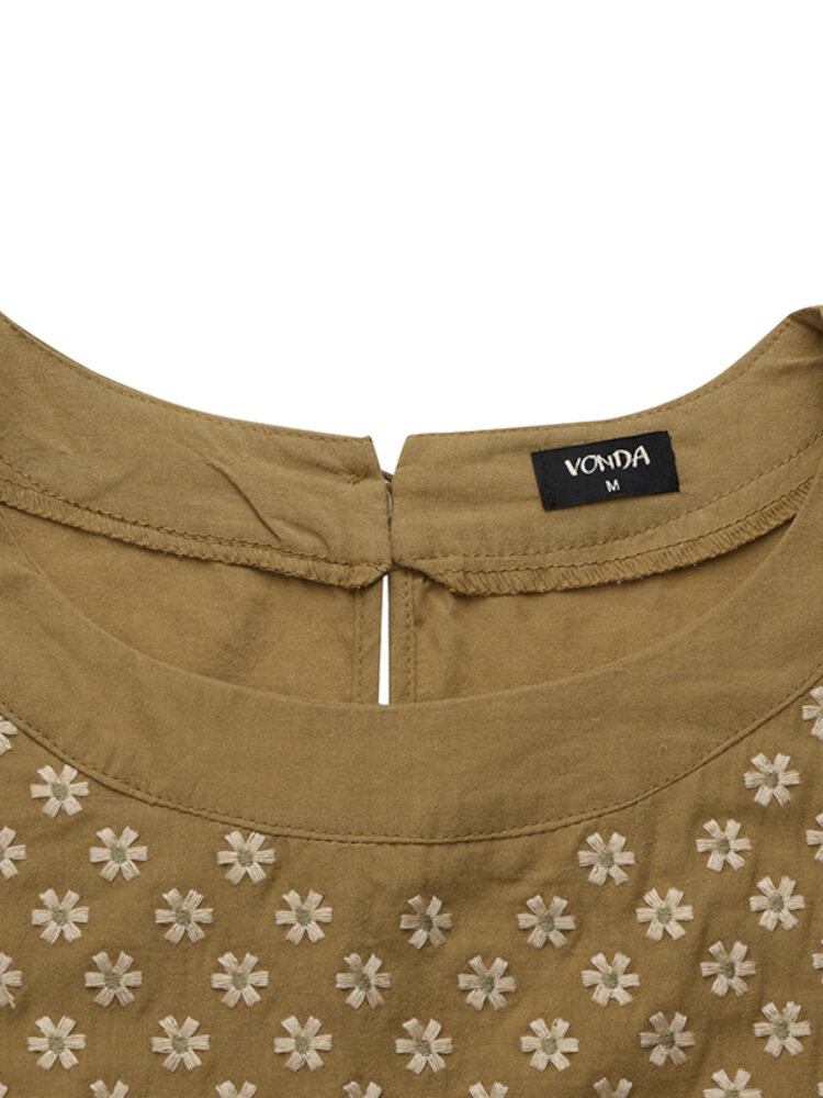 Kvinder 100% Bomuld Broderi Sidelommer Enkel Afslappet Kjole
