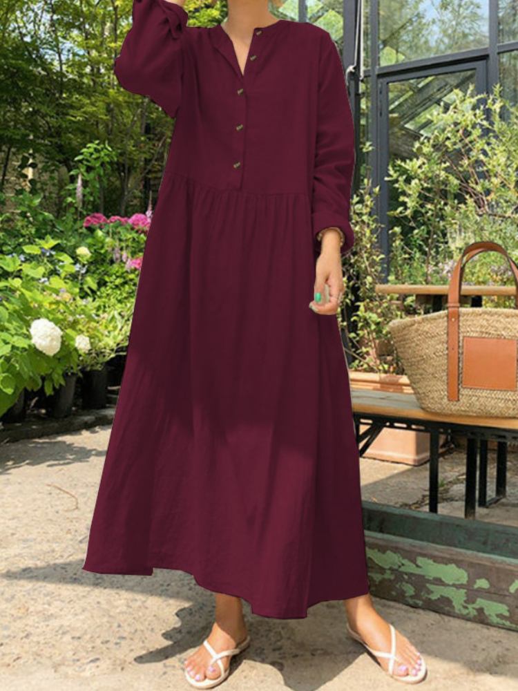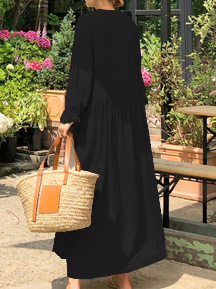 Kvinder 100% Bomuld Sidelommer Plisser Simple Casual Maxikjole