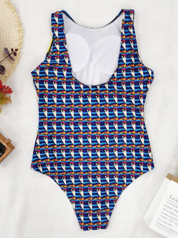Kvinder Abstrakt Figur Print Farveblok Ærmeløs Rygløs Badetøj I Ét Stykke