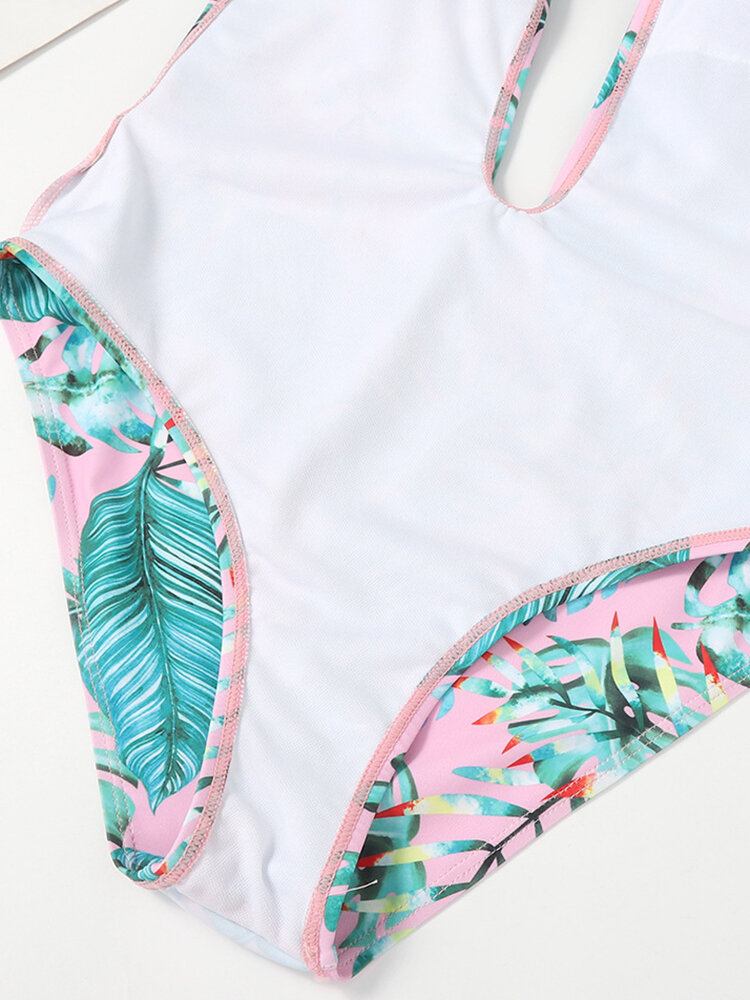 Kvinder Blomsterprint V-hals Krydsende Bælte Rygløs Slankende Badetøj I Et Stykke