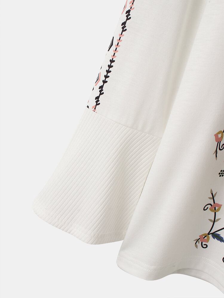 Kvinder Blomsterprint V-hals Lang Bell Sleeve Holiday Bohemian Casual Bluse