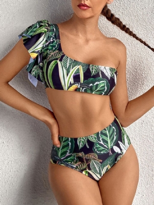 Kvinder Blomstertryk Brede Skulderstropper Flæser Bikini Højtaljede Badedragter