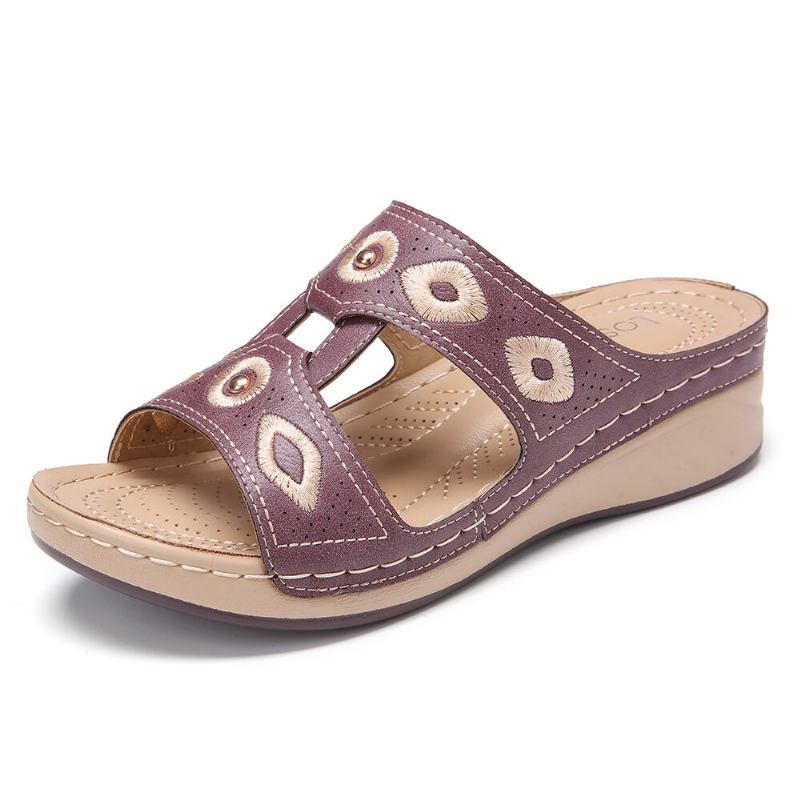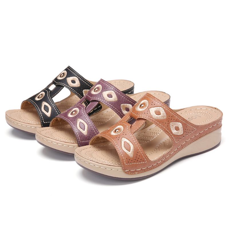 Kvinder Broderi Åben Tå Slip On Comfy Casual Wedge Sandaler