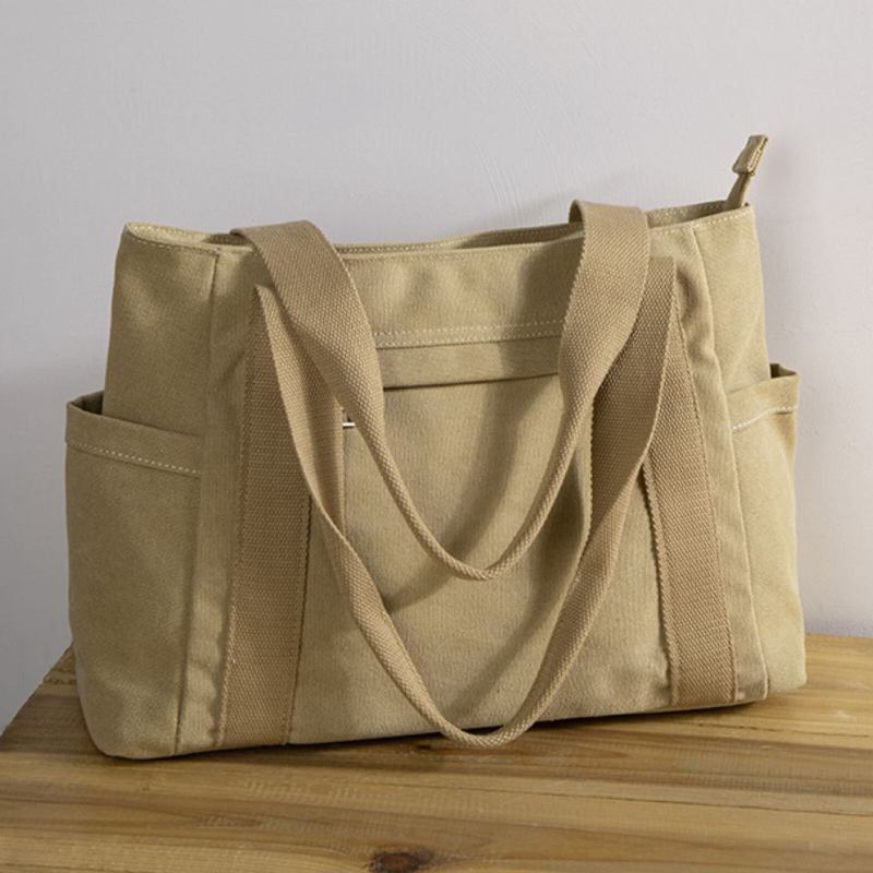 Kvinder Canvas Vintage Stor Kapacitet Tote Taske Skuldertaske Lynlås Design Skuldertaske