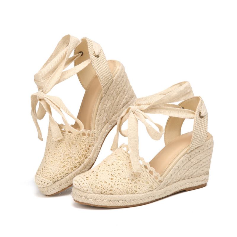 Kvinder Casual Blonder Lukket Tå Krydsrem Espadrillekiler