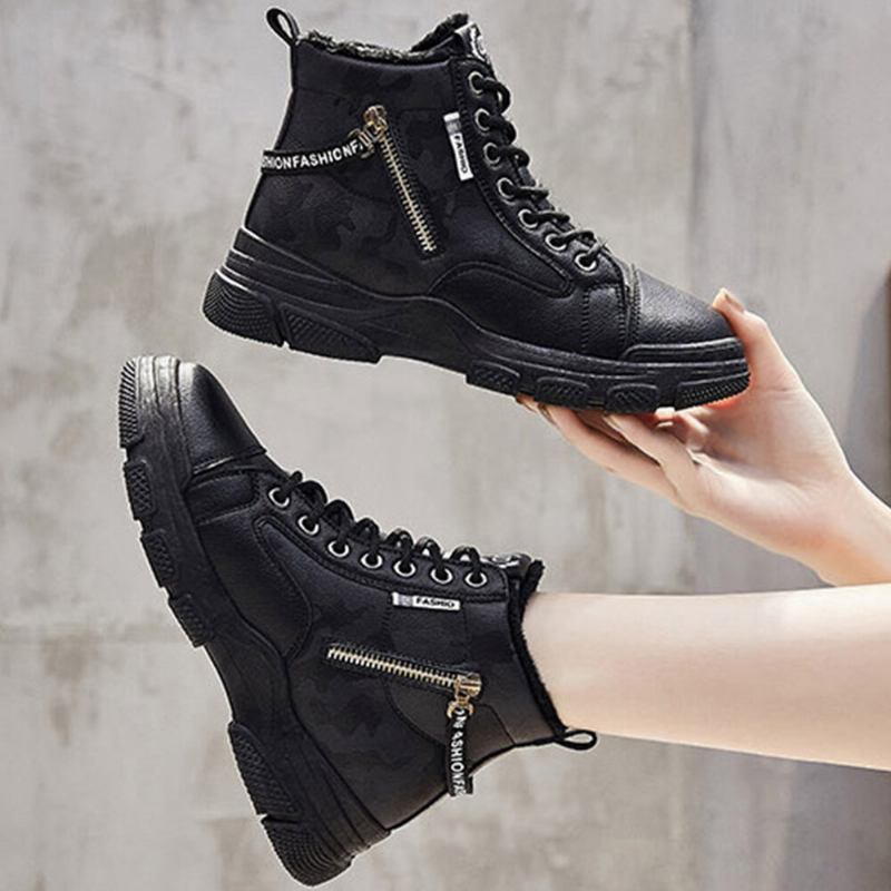 Kvinder Casual Letter Mønster Snøre Lynlåse Varme Bærbare Ankel Sports Court Sneaker Sko
