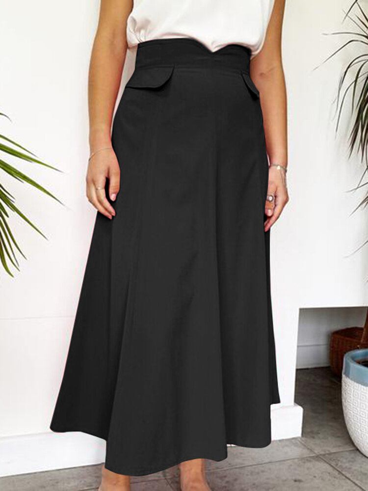 Kvinder Ensfarvet Lynlås Bagpå Casual Højtaljede Nederdele