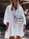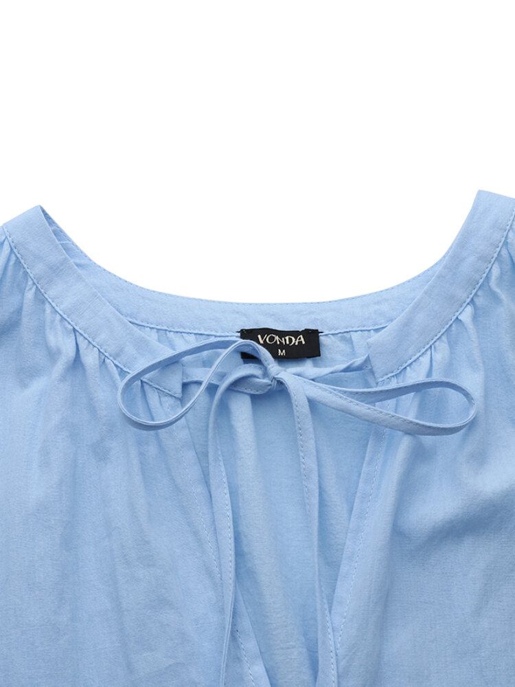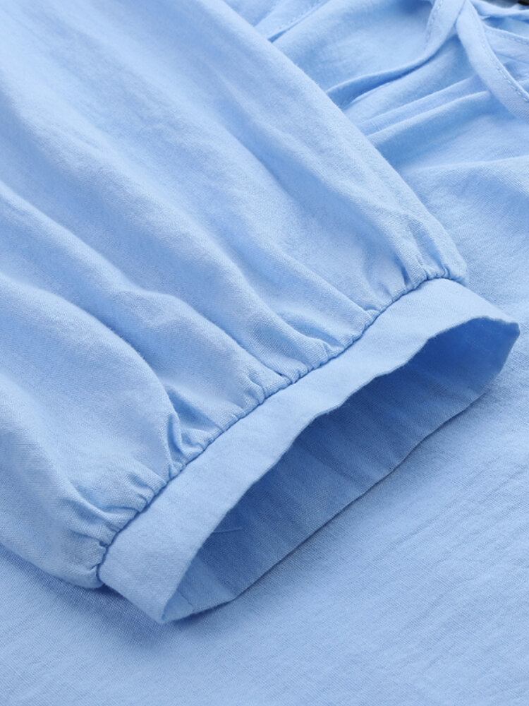 Kvinder Ferie Bomuld Ensfarvet V-hals Snørebånd Casual Løs Dukkenederdel