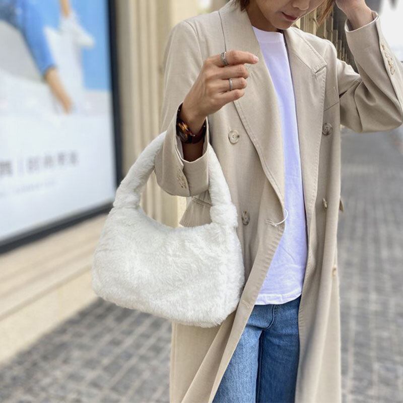 Kvinder Filt Blød Mini All-match Underarm Stribe Mønster Håndtaske Skuldertaske