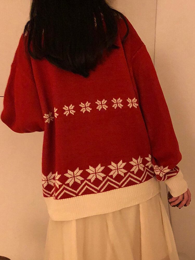 Kvinder Jul Far Snefnug Mønster Strikkede Løse Trøjer Med Dropærmer