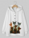 Kvinder Multi Cartoon Cat Printed Langærmet Søde Hvide Hættetrøjer