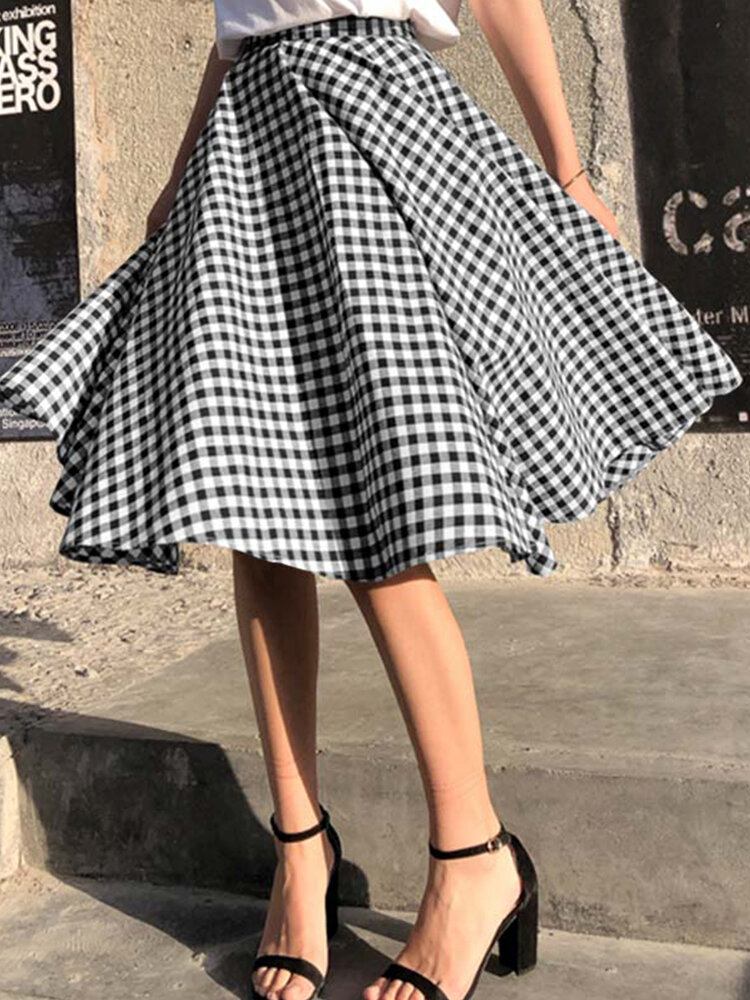 Kvinder Plaid Plisseret Splejset Løse Casual Fritidsnederdele