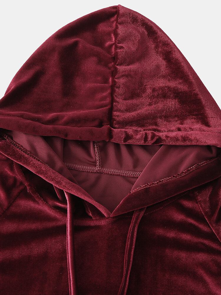Kvinder Plus Size Solid Velvet Kænguru Lomme Hættetrøje Løse Shorts Home Casual Pyjamas Sæt