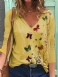 Kvinder Sommerfugletryk V-hals Regular Fit Langærmet Casual T-shirt