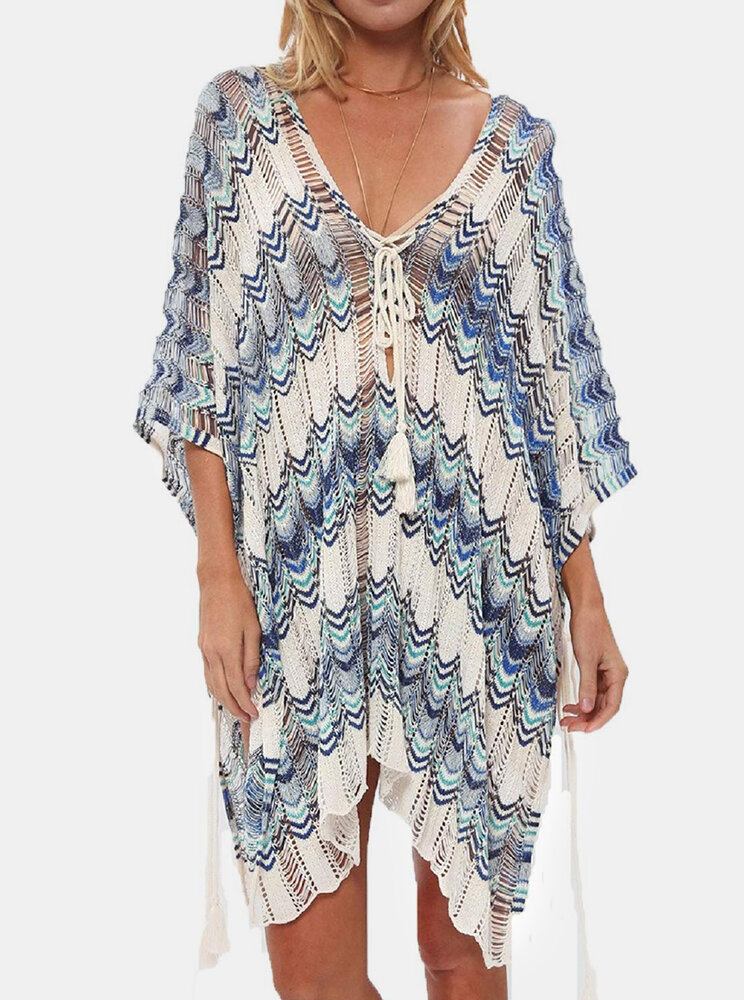 Kvinder Striber Vintage Print Bandage Side Slids Solbeskyttelse Cover Ups Beach Badetøj