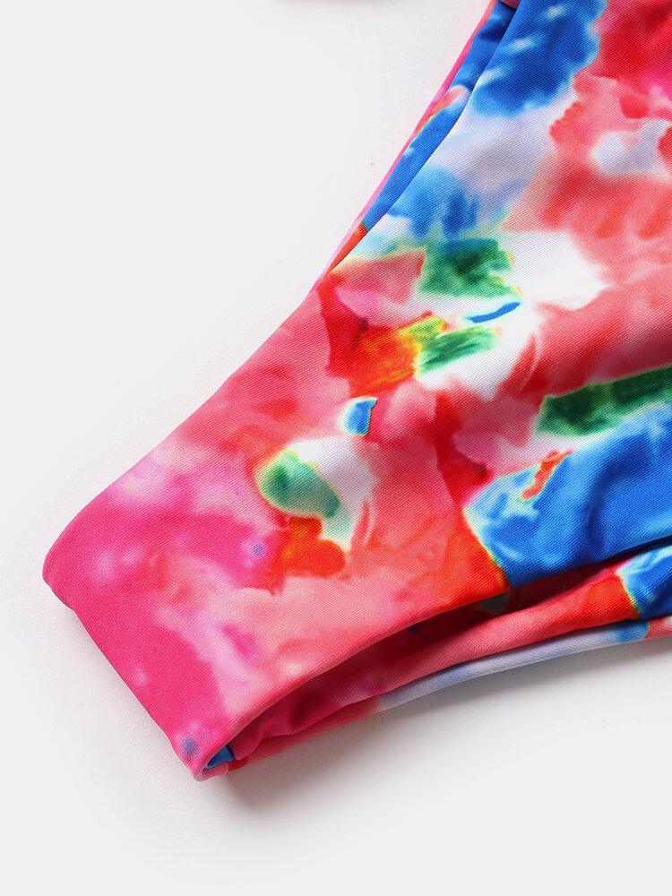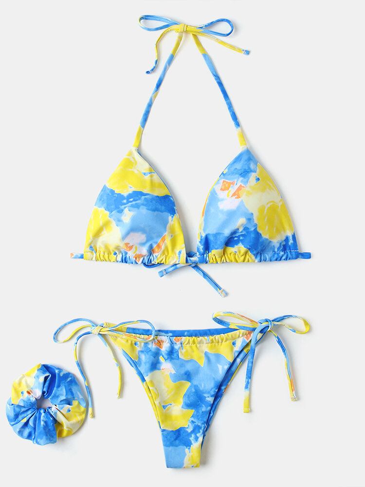 Kvinder Tie Dye Trekant Halter String Micro Bikinier Bagsider Strandtøj Med Håndring