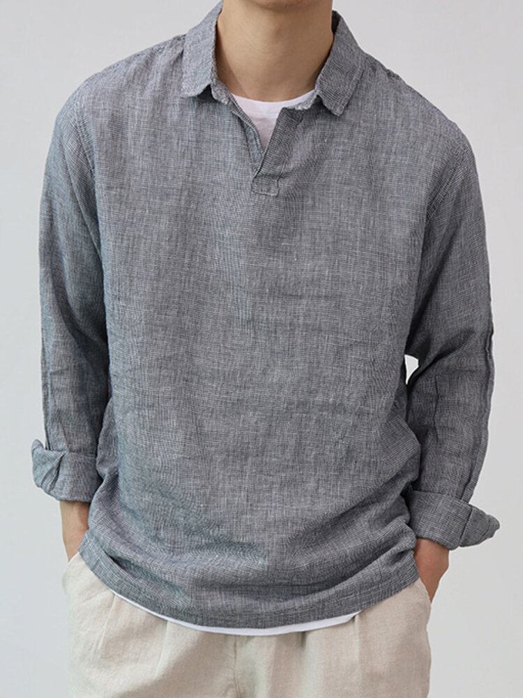 Langærmede Henley-skjorter Med Enkel Tekstur Til Mænd