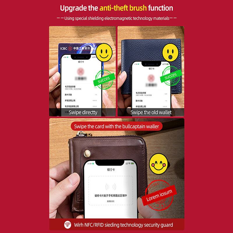Mænd Ægte Læder Multifunktion Bifold Lynlås Tegnebøger Rfid Anti-magnetisk Multi-kort Slot Kortholder Møntpung