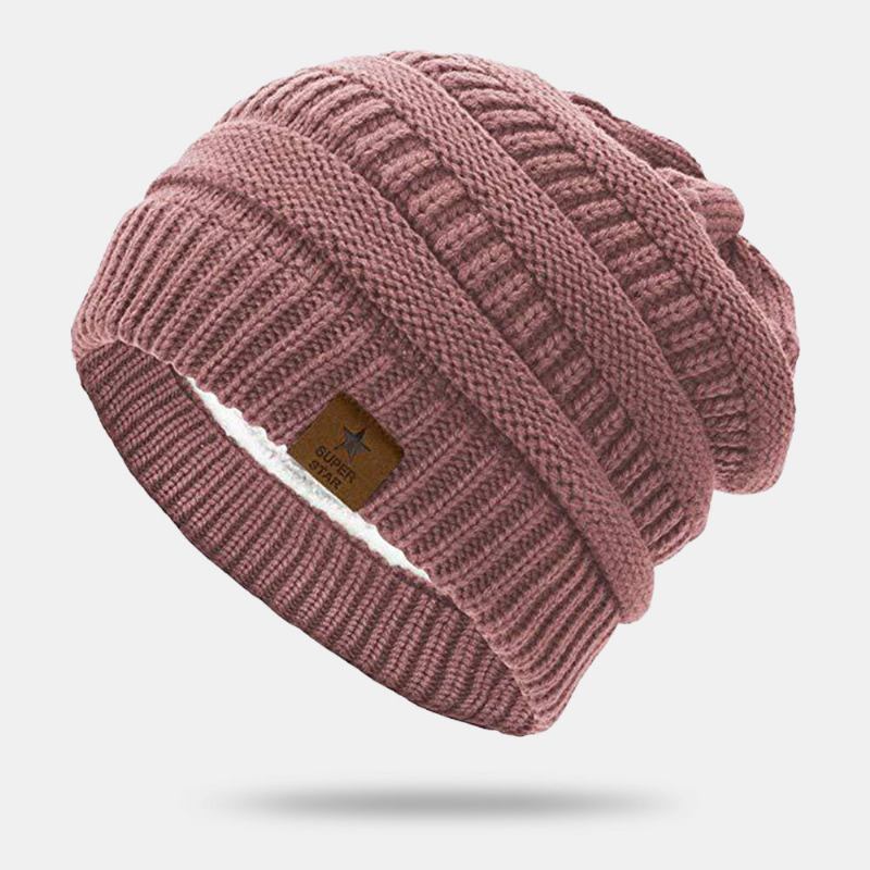 Mænd Beanie Hatte Strikket Plus Velvet Stribet Femtakket Stjerne Letter Label Varme Skull Cap