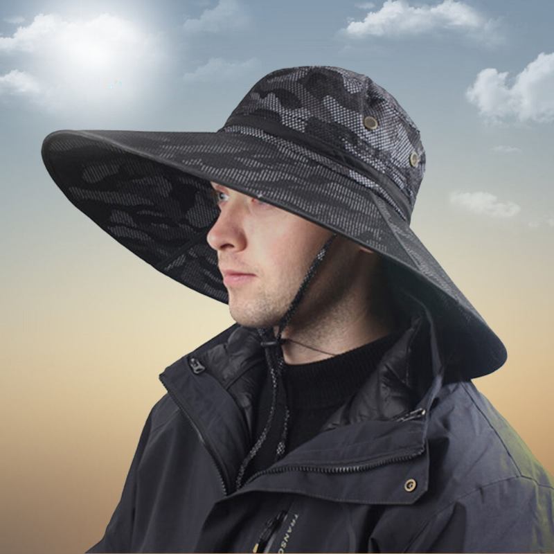 Mænd Bucket Huer Polyester Camouflage Justerbar Oversized Skygge Åndbar Solcreme Udendørs Fiskeri Klatre Bucket Hat