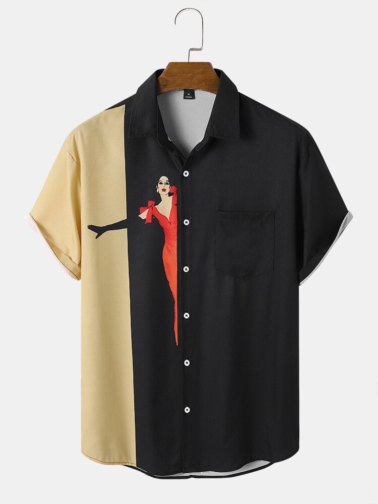 Mænd Colorblock Hiding Beauty Print Fit Hudvenlige Yndefulde Skjorter