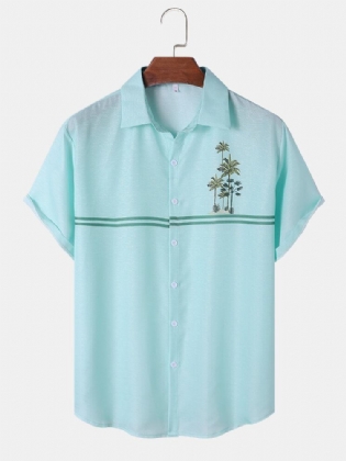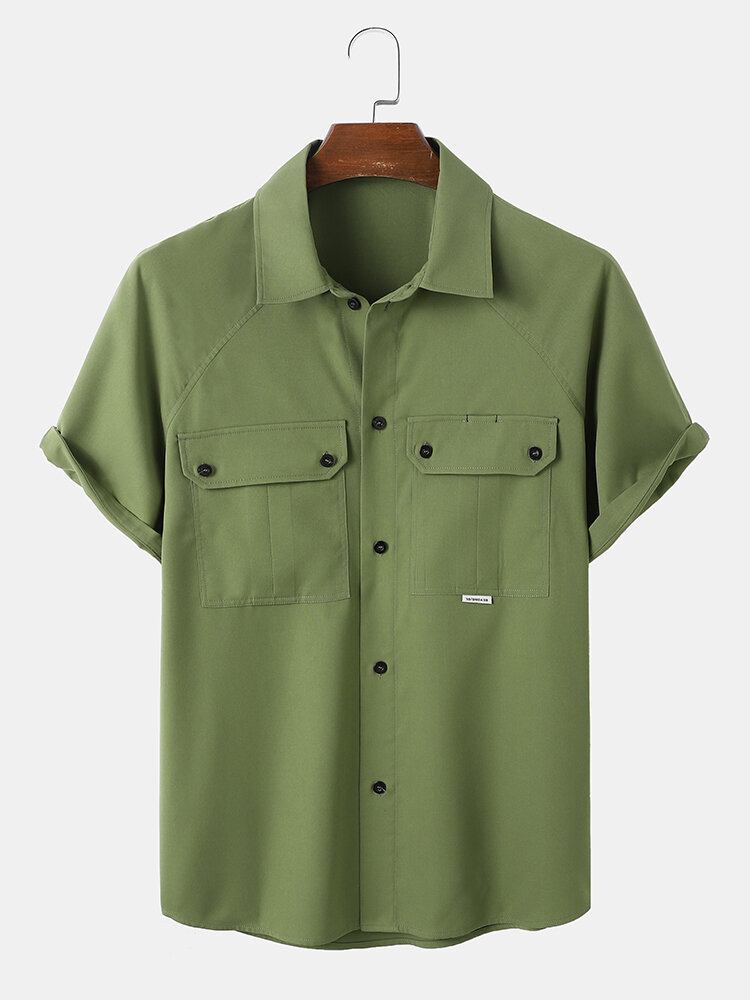Mænd Ensfarvede Knapper Kortærmede Fritid Alle Matchede Hudvenlige Skjorter
