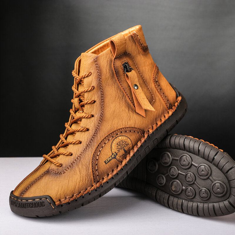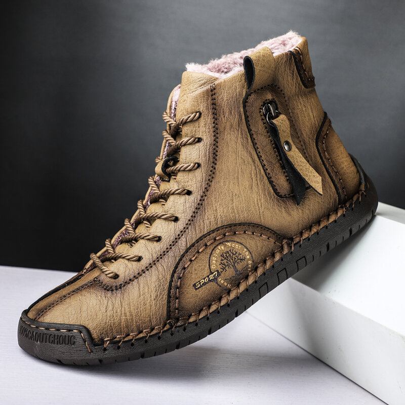 Mænd Håndsømme Microfiber Læder Varmt Plys Foring Bløde Ankelstøvler